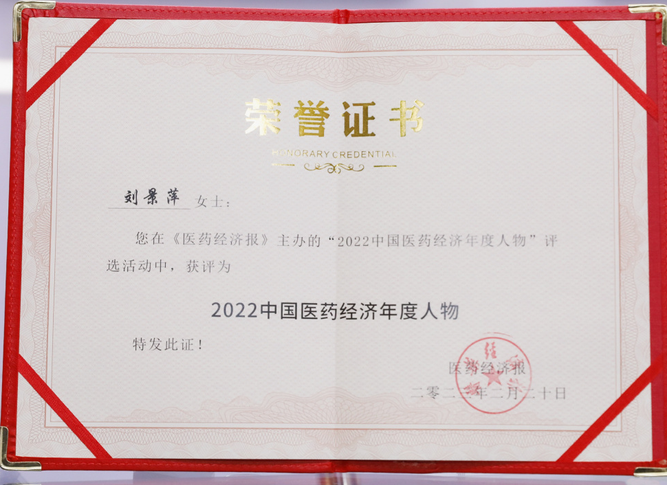 人生就是博药业集团董事长刘景萍当选“2022中国医药经济年度人物”
